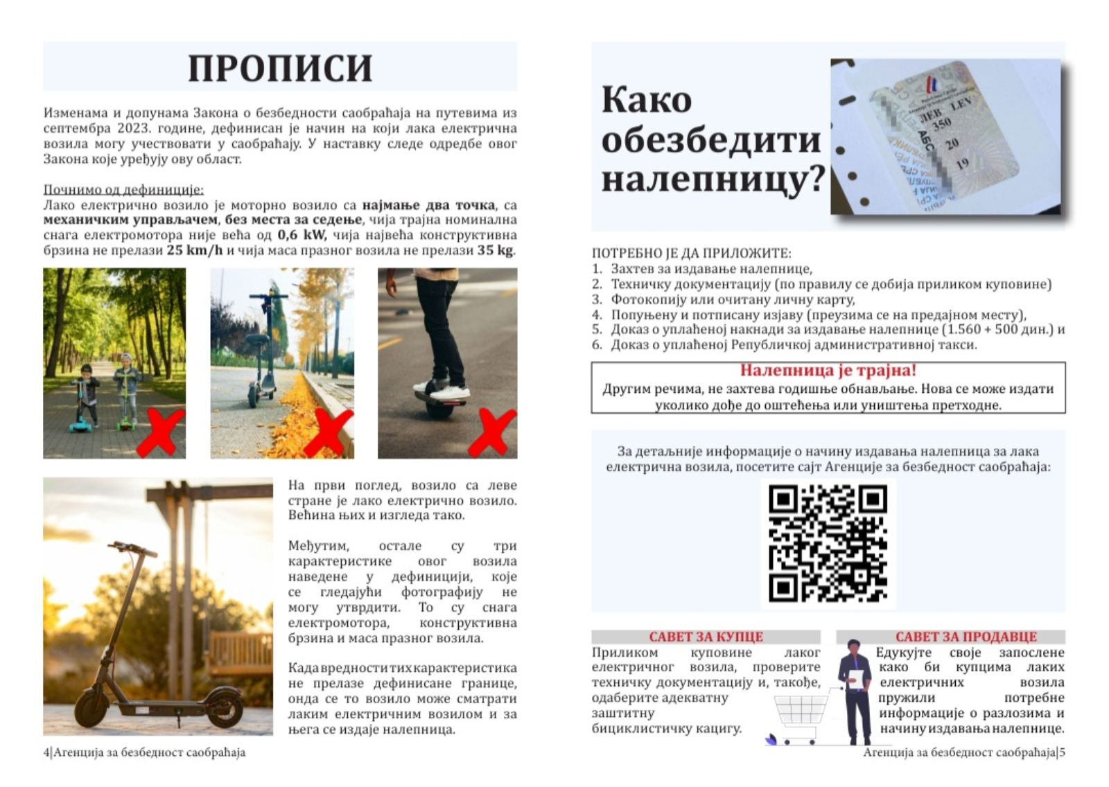 Подсећамо да су изменама и допунама Закона о безбедности саобраћаја на путевима из септембра 2023. године прописани услови и правила учешћа лаких електричних возила у саобраћају.