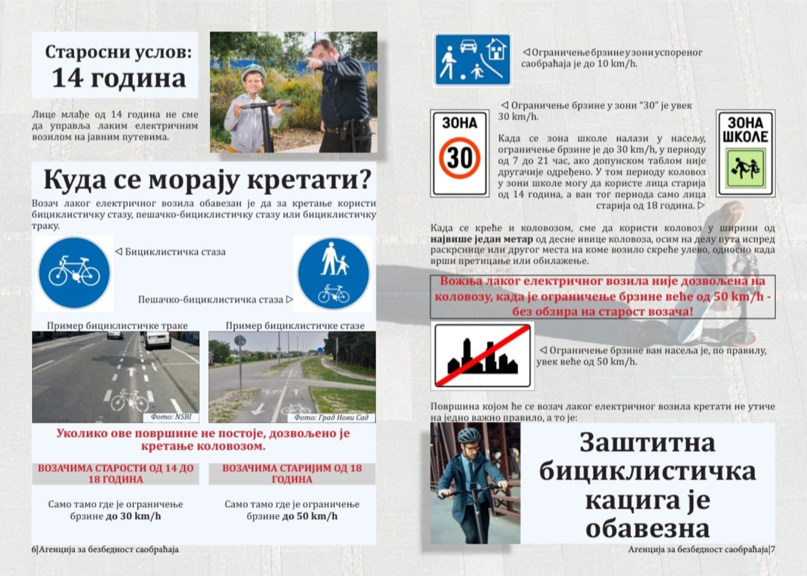 - лаким електричним возилом на јавним путевима не сме управљати лице млађе од 14 година;